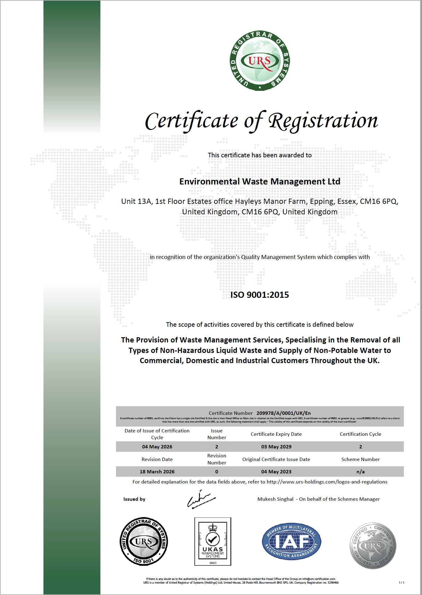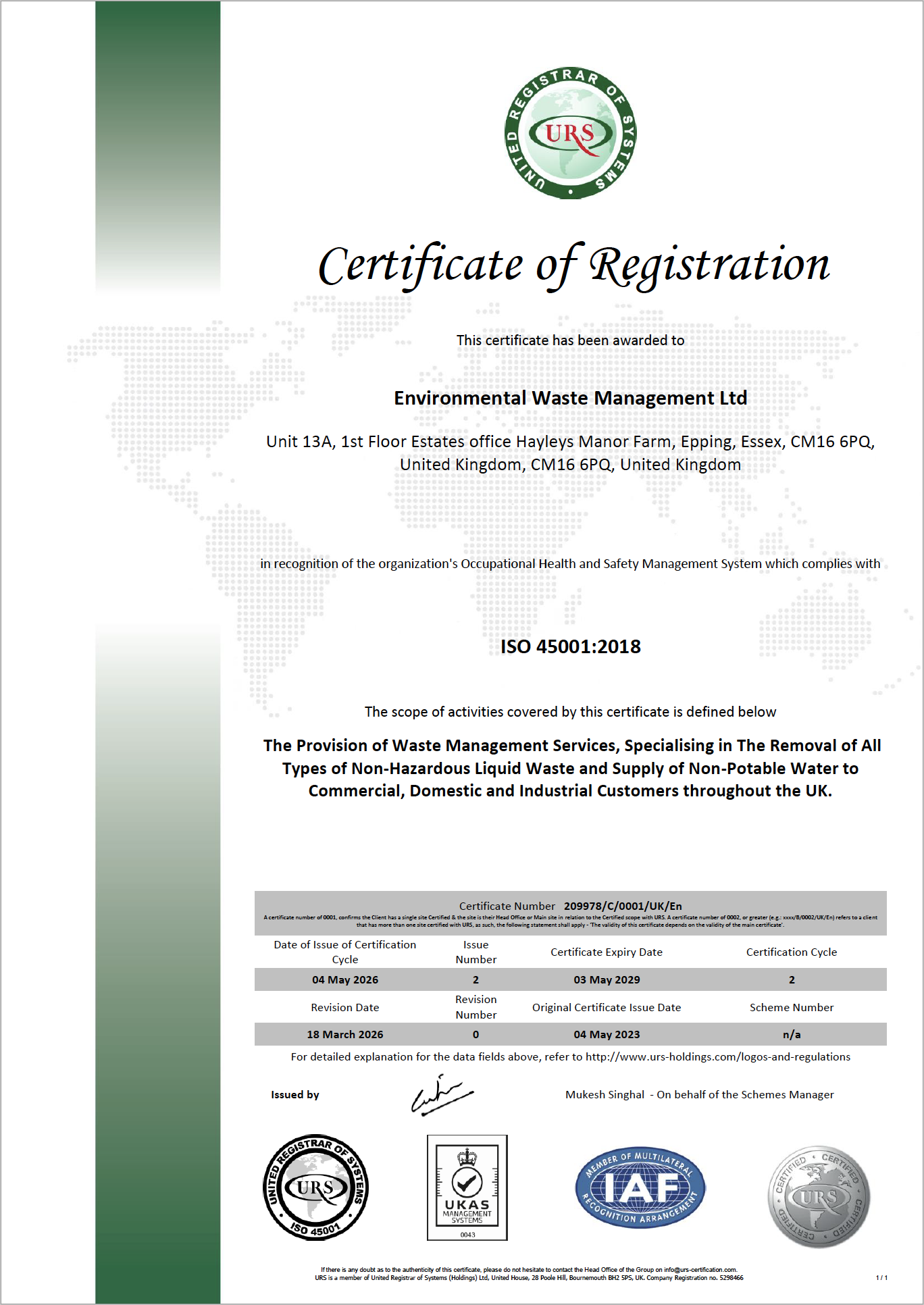 Environmental Waste Management are a well established and trusted company with an impressive range of accreditations.